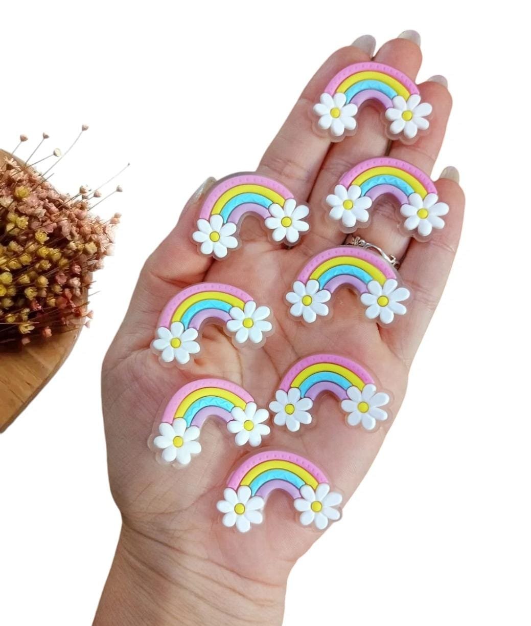 APLIQUE ARCO-ÍRIS FLORZINHA BRANCA EMBORRACHADO 3,7CM C/ 2 UND