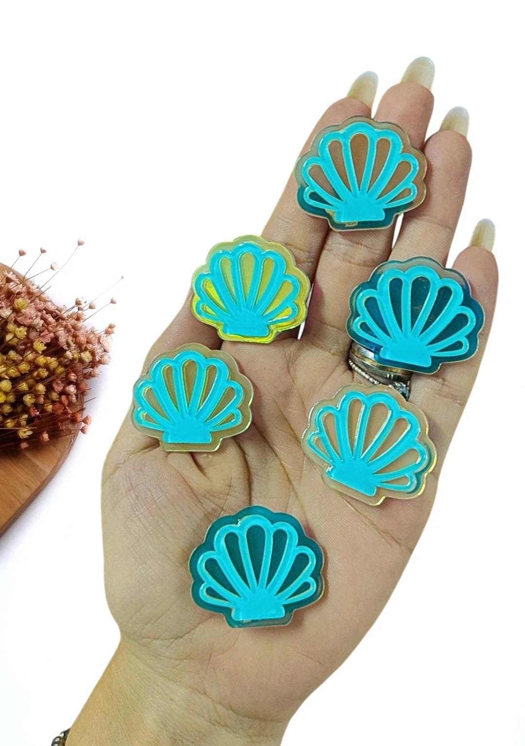 APLIQUE CONCHA EM RESINA 3,4CM AZUL C/ 2 UND