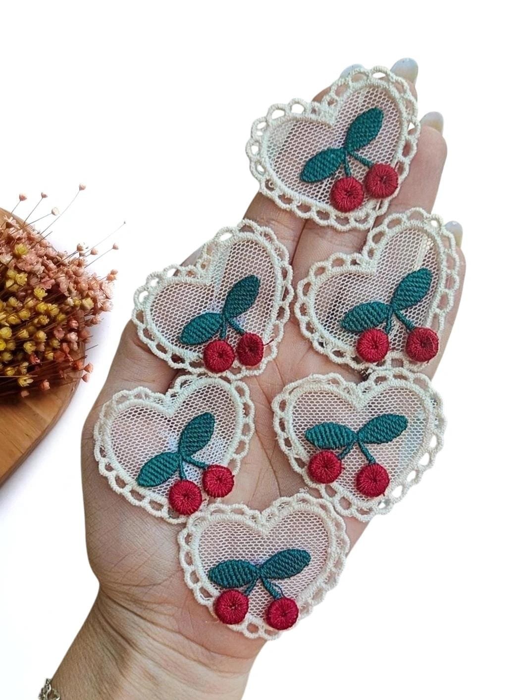 APLIQUE CORAÇÃO EM TECIDO BORDADO