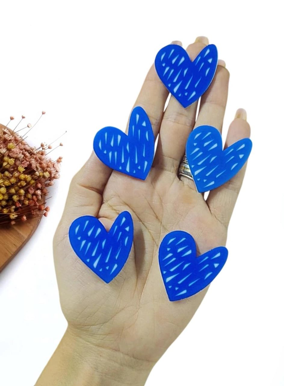 APLIQUE EM ACRÍLICO SUBLIMADO CORAÇÃO RABISCADO AZUL BIC 4 CM UND