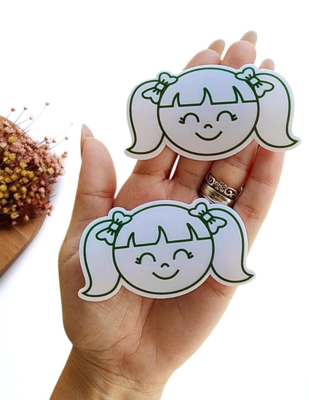 APLIQUE EM ACRÍLICO SUBLIMADO CURVADO MENININHA RABISCADA VERDE 8 CM UND
