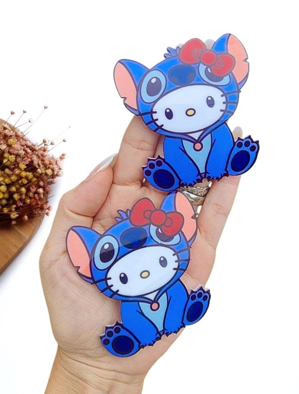 APLIQUE EM ACRÍLICO SUBLIMATICO HELLO KITTY DE STITCH 3,5 CM UND