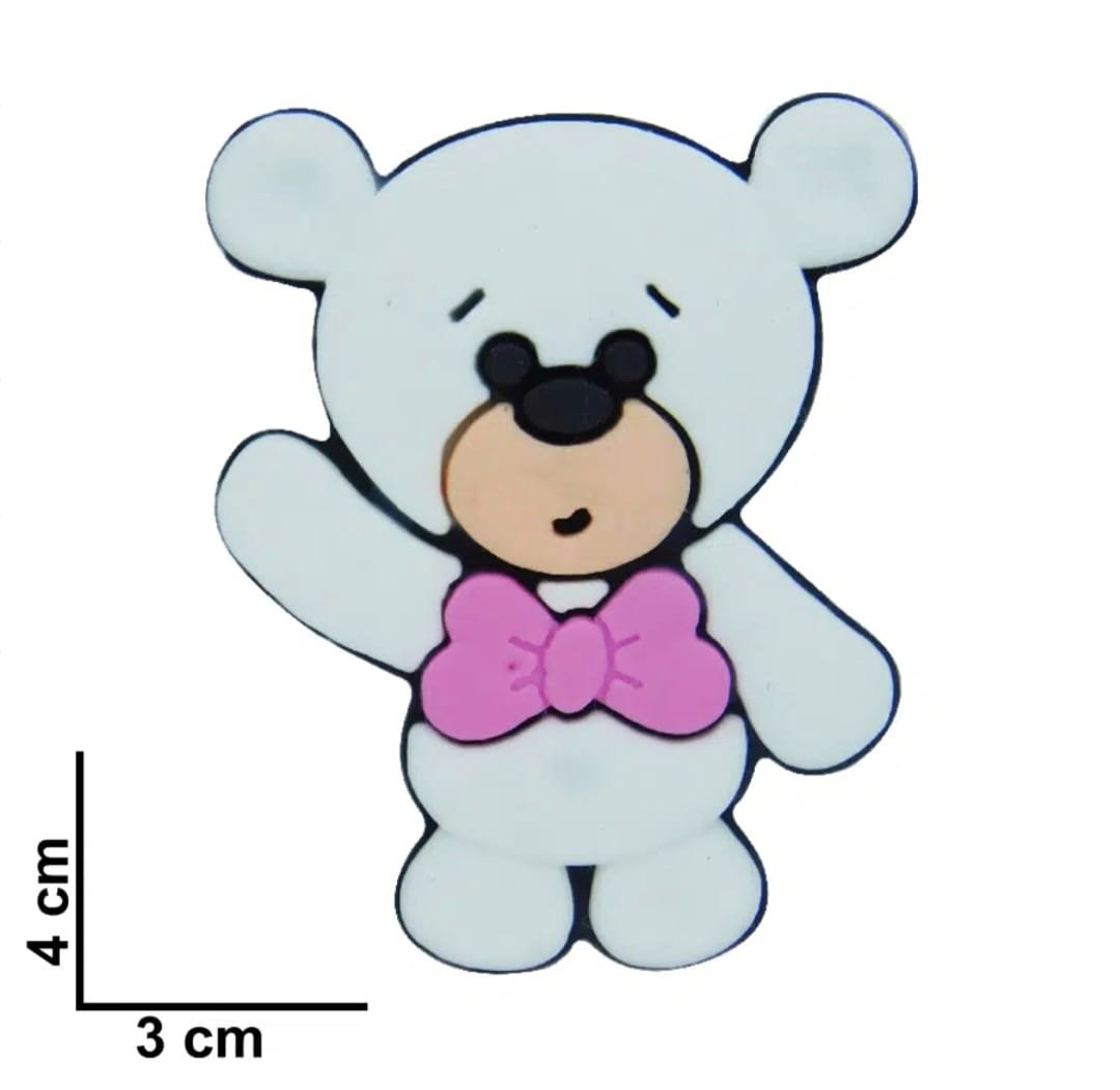 APLIQUE EMBORRACHADO URSINHO BRANCO COM GRAVATA PINK 3X4CM C/ 2 UND