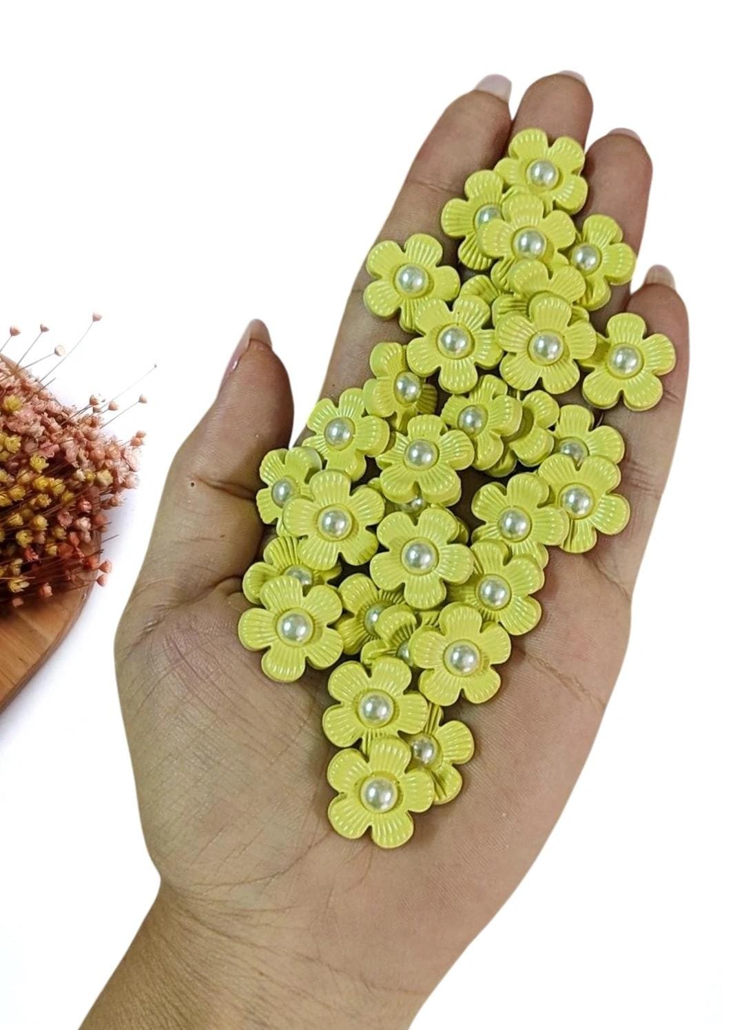 APLIQUE FLOR AMARELO C/ MIOLO PEROLADO 1,7 CM C/ 2 UND