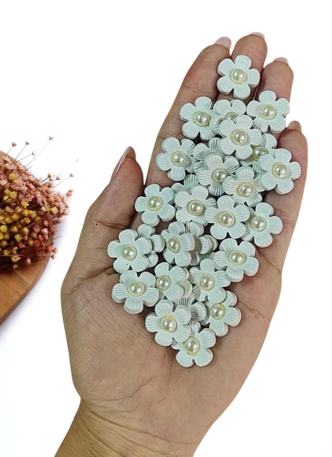 APLIQUE FLOR BRANCO C/ MIOLO PEROLADO 1,7 CM C/ 2 UND