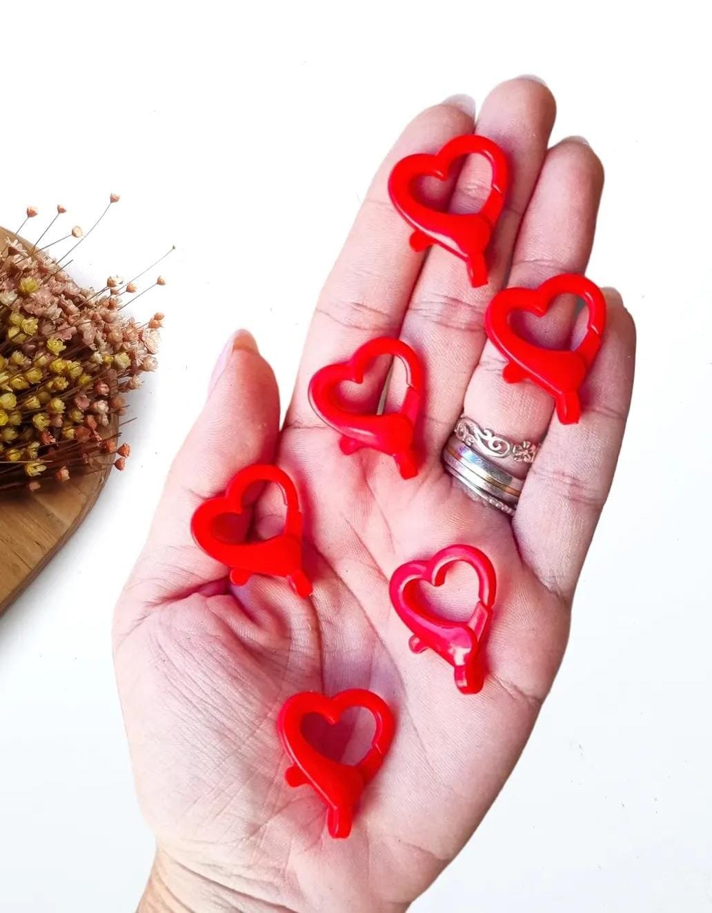 FECHO LAGOSTA CORAÇÃO VERMELHO 2,5X3,5CM C/ 2 UND