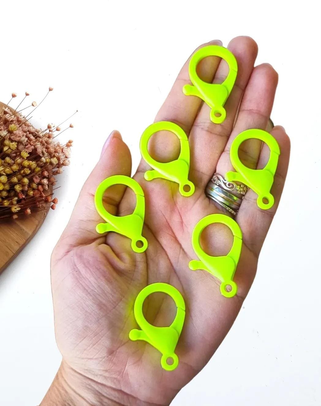 FECHO MOSQUETÃO LAGOSTA CORAÇÃO VERDE FLÚOR 2,5X3,5CM C/ 2 UND