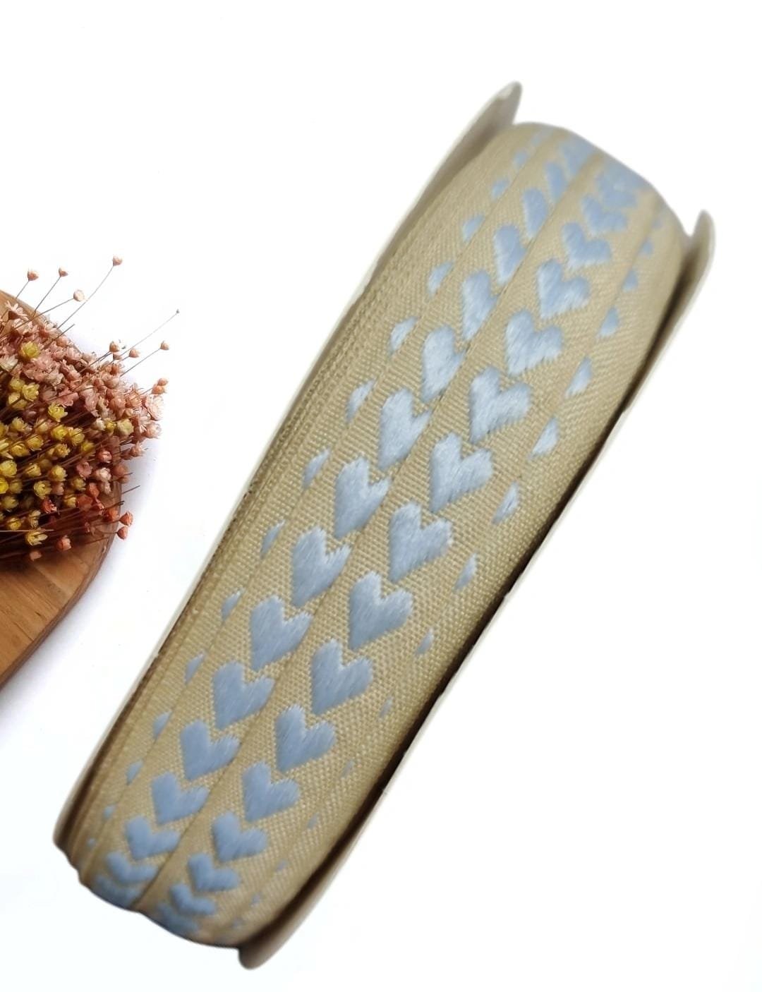 FITA IMPORTADA CORAÇÕES BORDADOS 10MM AZUL BEBÊ – METRO