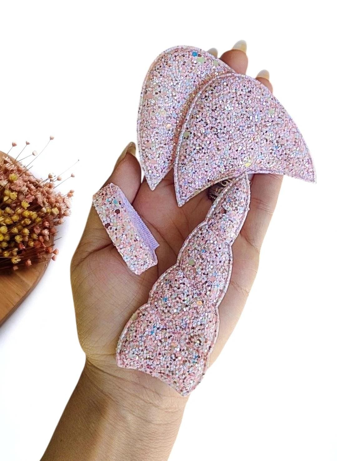 QUANTIDADE: Pacote com 2 orelhas, 1 chifre e uma fita para encapar tiaras